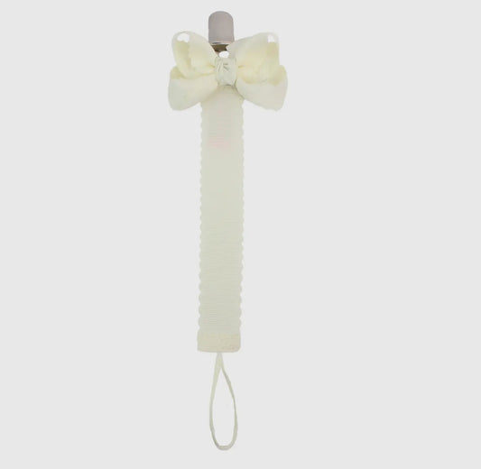 Crochet Edge Ribbon Paci Clip W/Rosebud