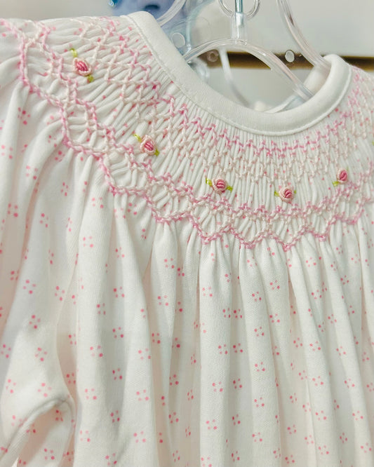 Sally Pink Dots Hand Smocked Bubble