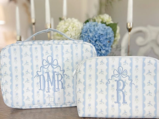 TRVL Blue Floral Stripe Hanging Toiletry Case