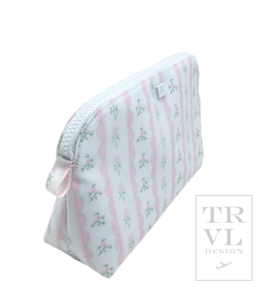 TRVL Pink Ribbon Floral Cosmetic Bag