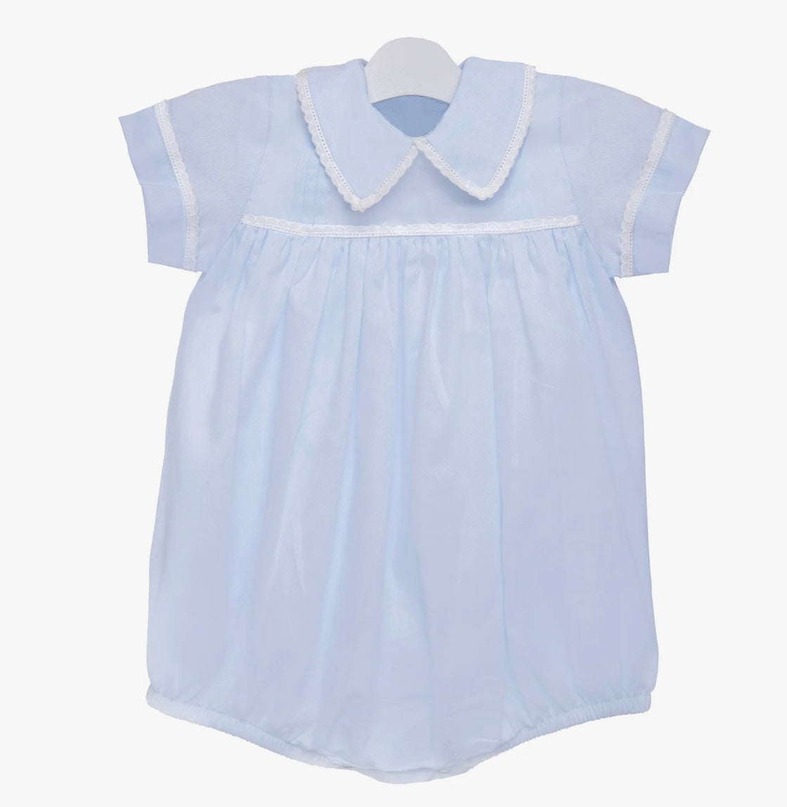 Andrew Bubble is crafted from premium brushed Batiste cotton for added softness and comfort as well as style. Features a charming Peter Pan collar, pleat detailing and subtle lace accents.