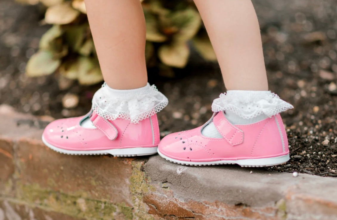 Birdie is our long time classic and favorite t-strap style for babies and tots. Fine stitching and darling bead shaped perforated design make this shoe absolutely irresistible.