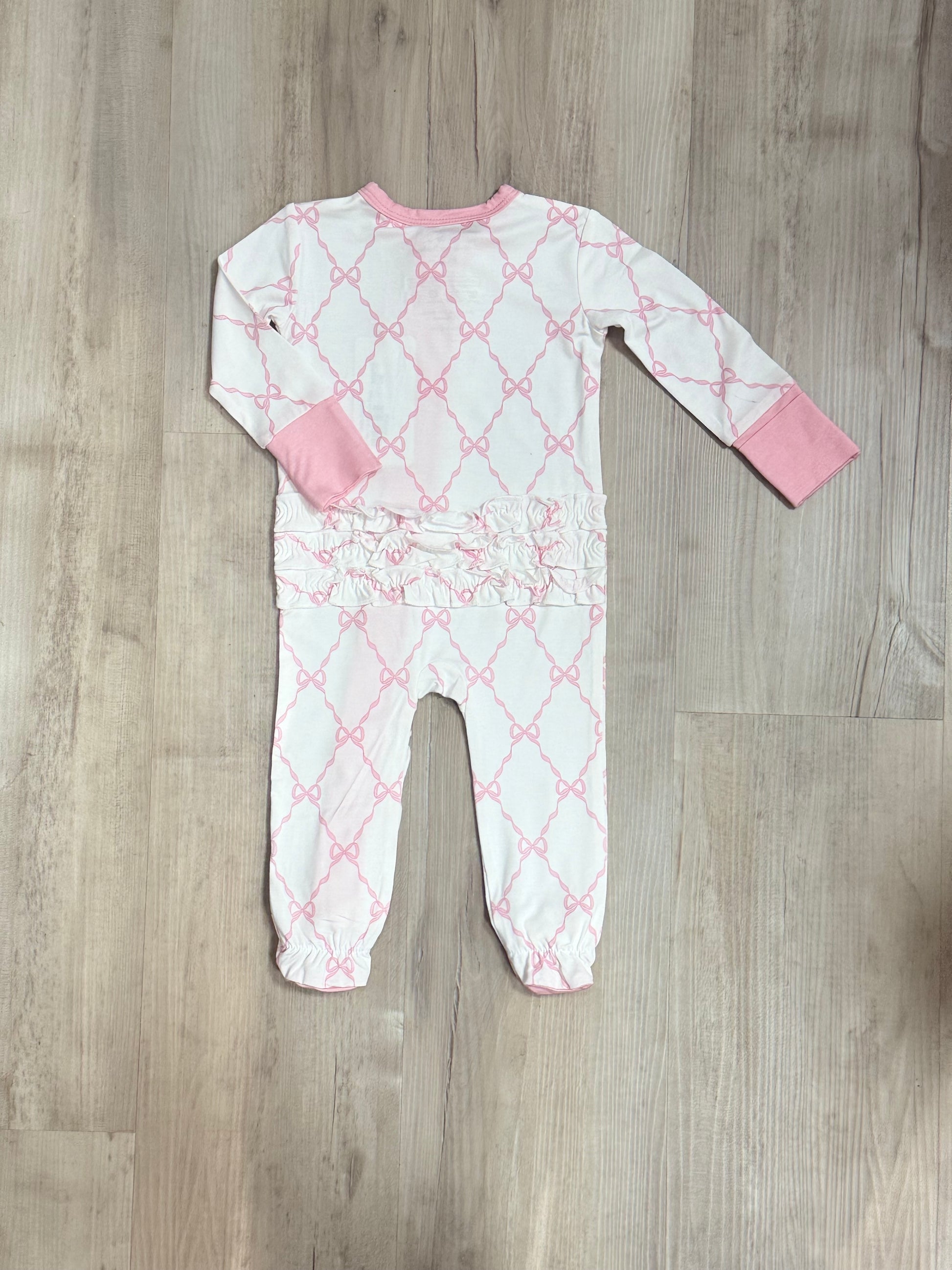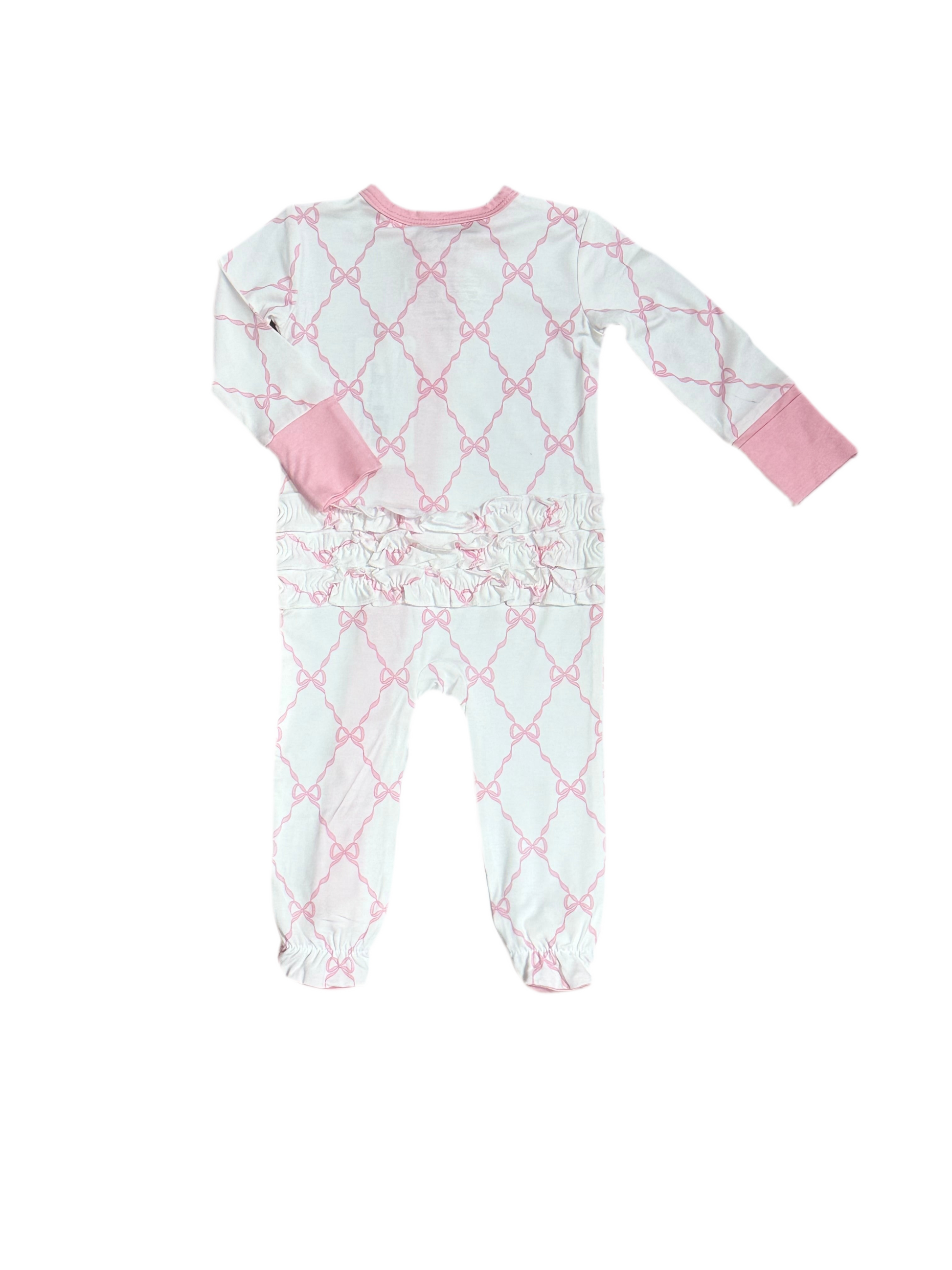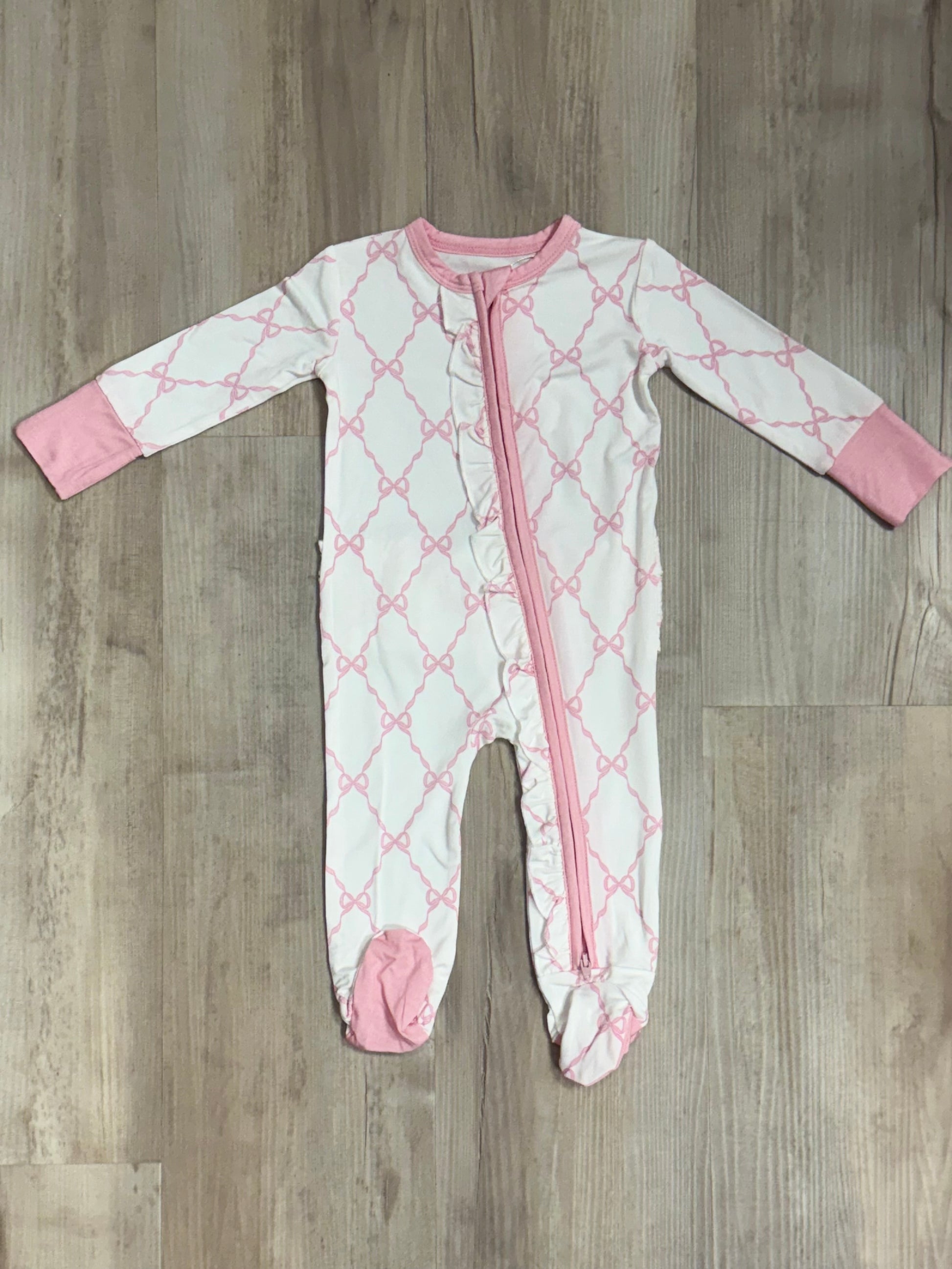 The Bow Trellis Footie is crafted from soft, breathable bamboo fabric, ensuring gentle comfort for delicate skin. Designed with a convenient zipper closure, it allows for easy dressing and quick diaper changes. This footie combines natural fabric benefits with practical functionality, making it an ideal choice for everyday wear.
