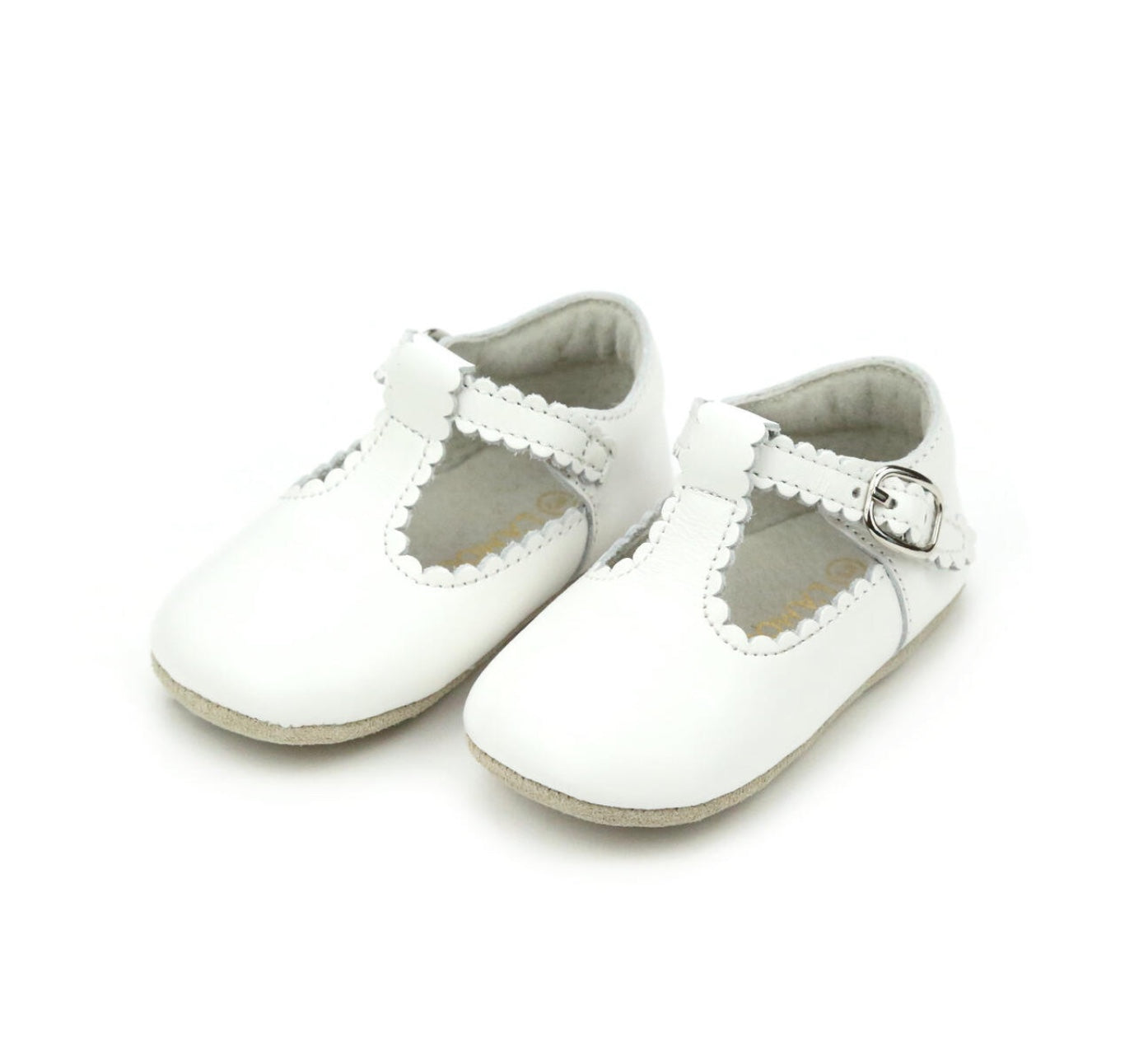 Buttery soft to the touch, with its extra scalloped detail, the Elodie is an irresistible gift for wrapping little toes in luxe and comfort.
