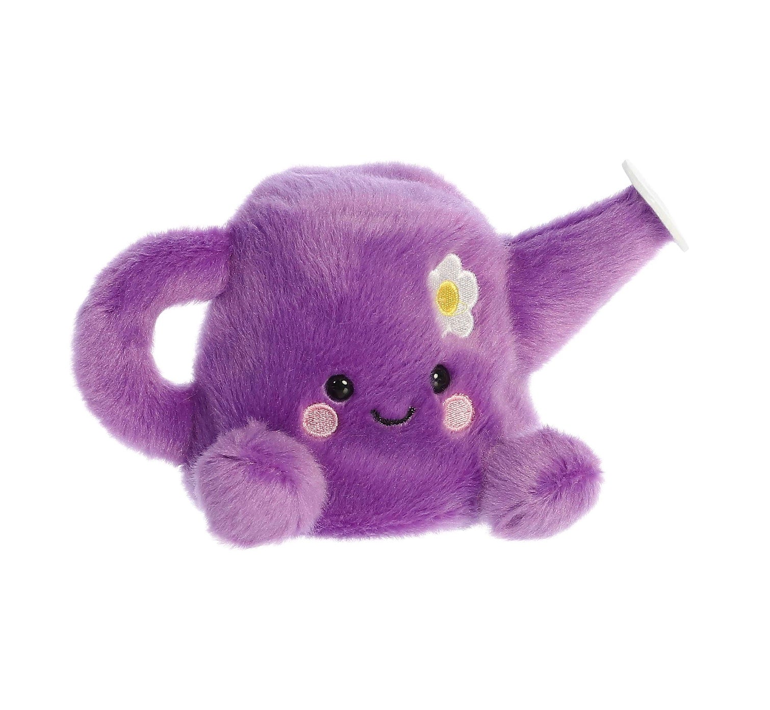 Flo Watering Can is an endearing plush, wrapped in a calming shade of lavender, with a cozy handle that's just right for tiny hugs. Adorned with a dainty white flower, her beaming face, complete with serene black eyes and a tender smile, captures her tranquil nature beautifully.