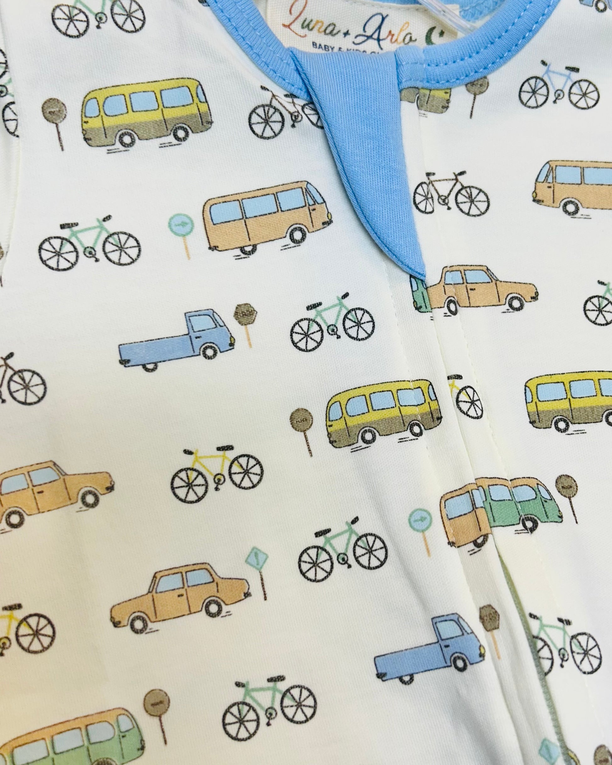 100% cotton footie in car and truck print