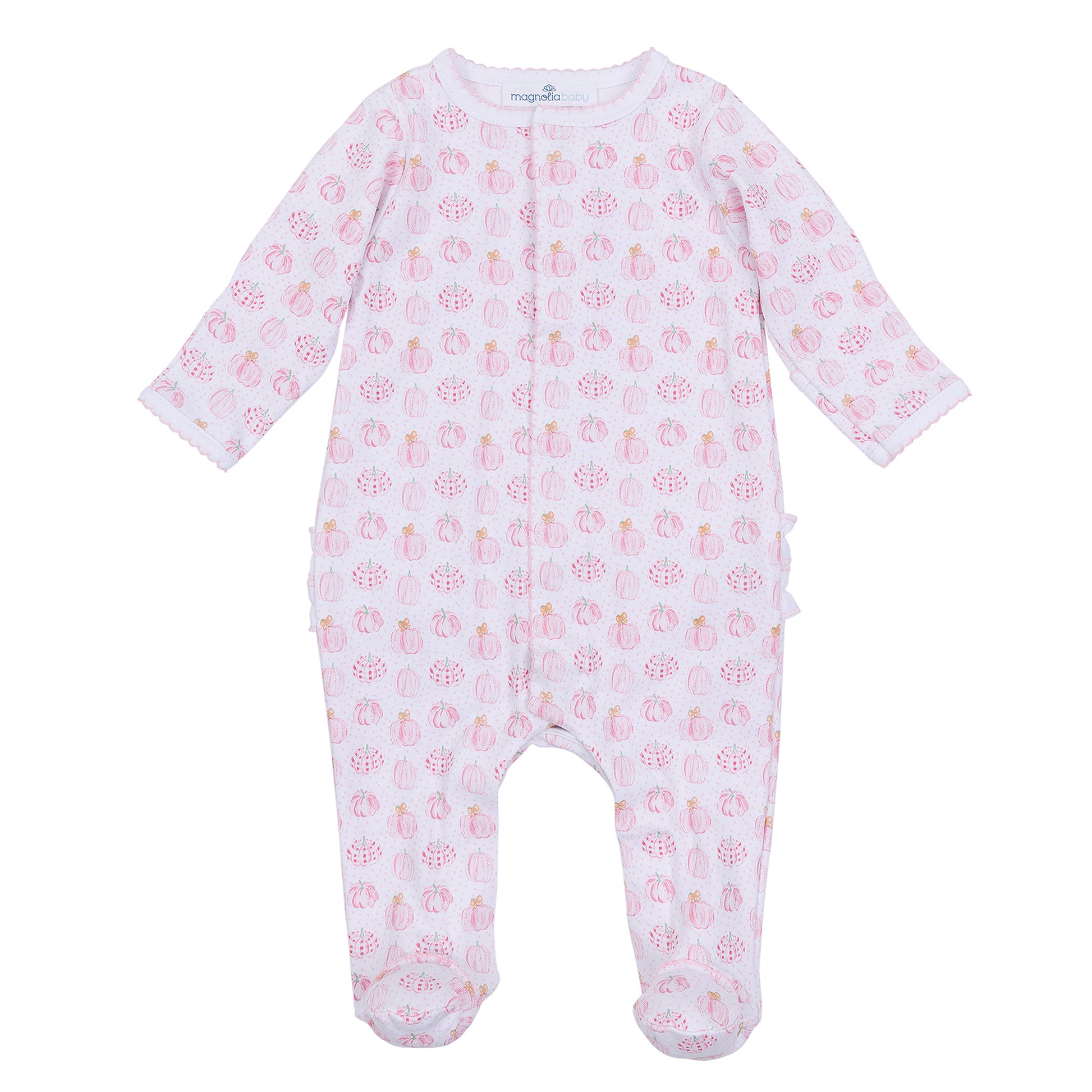 Magnolia Baby Precious Print Pumpkins Ruffled Zipper Footie Pink