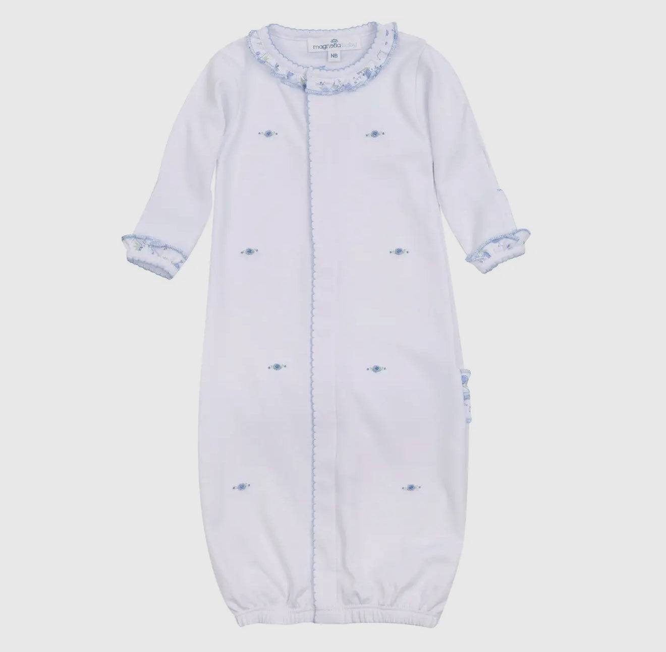 Pima Cotton white gown with blue embroidery