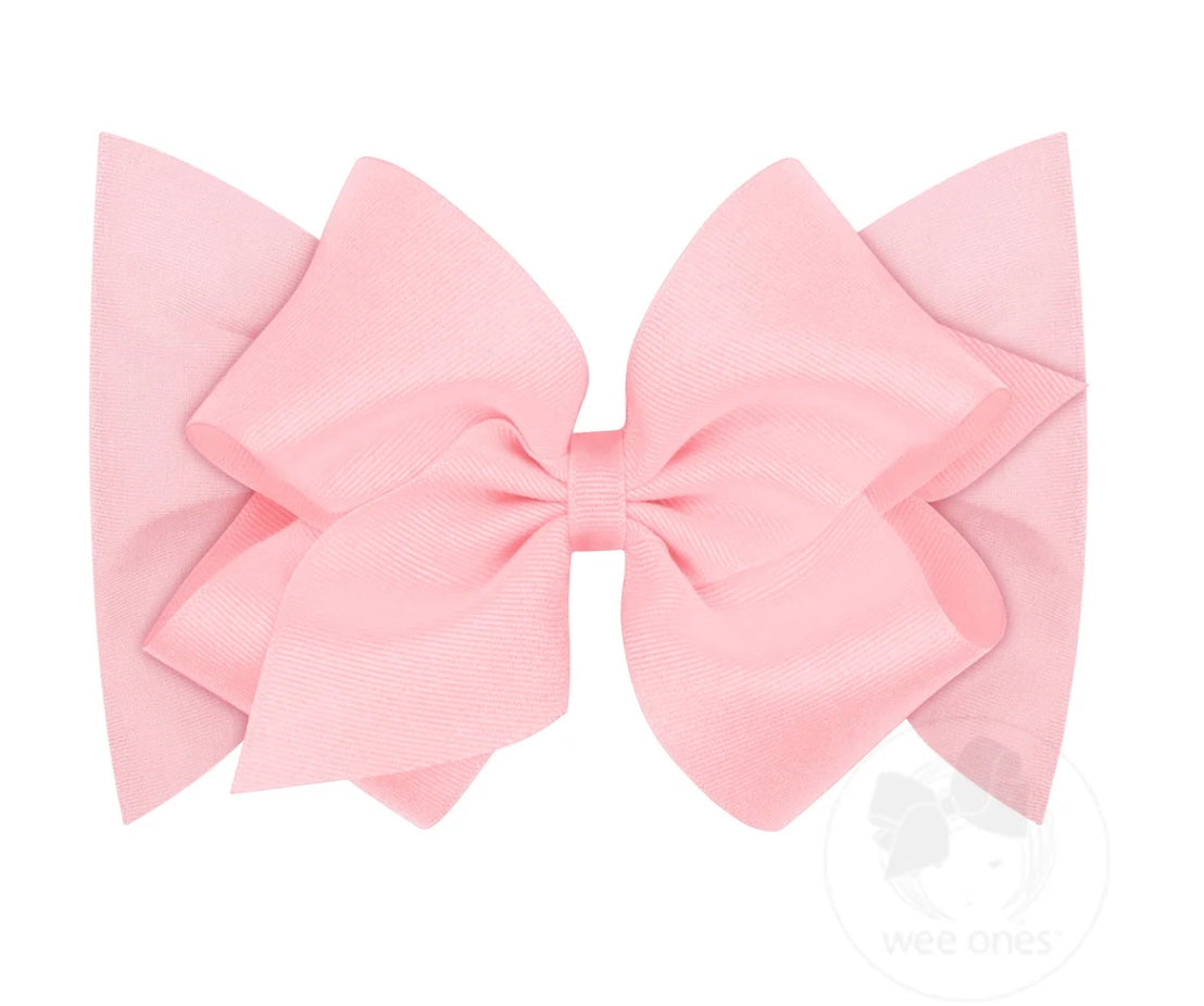 Our small king classic grosgrain bow is now perfect for baby with our matching soft cotton jersey band. Available in light pink and white.
