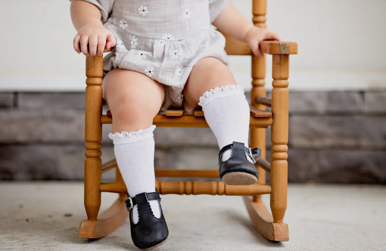 White Smooth Knit Lace Top Knee Highs For Baby, Toddler, and Girls.