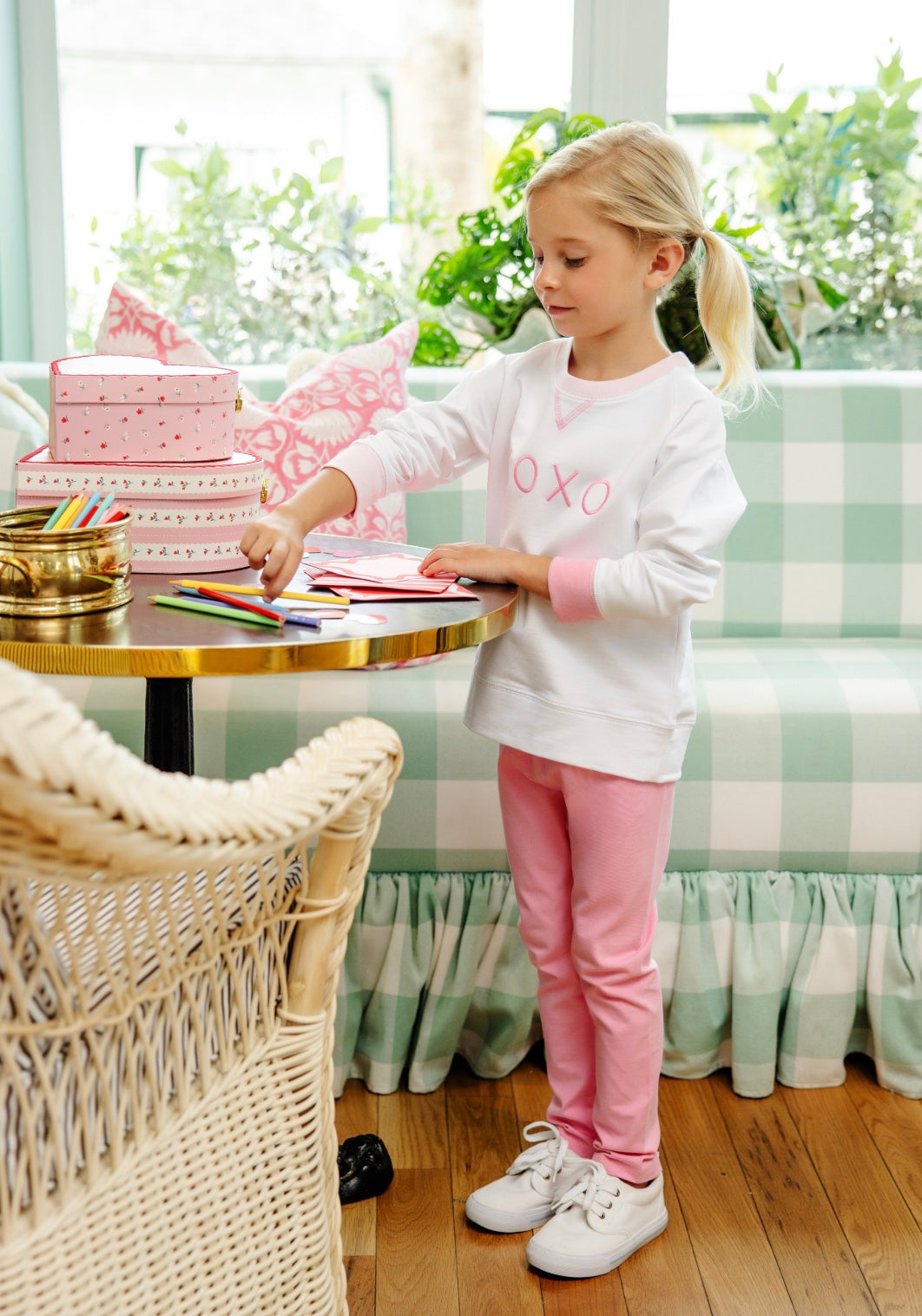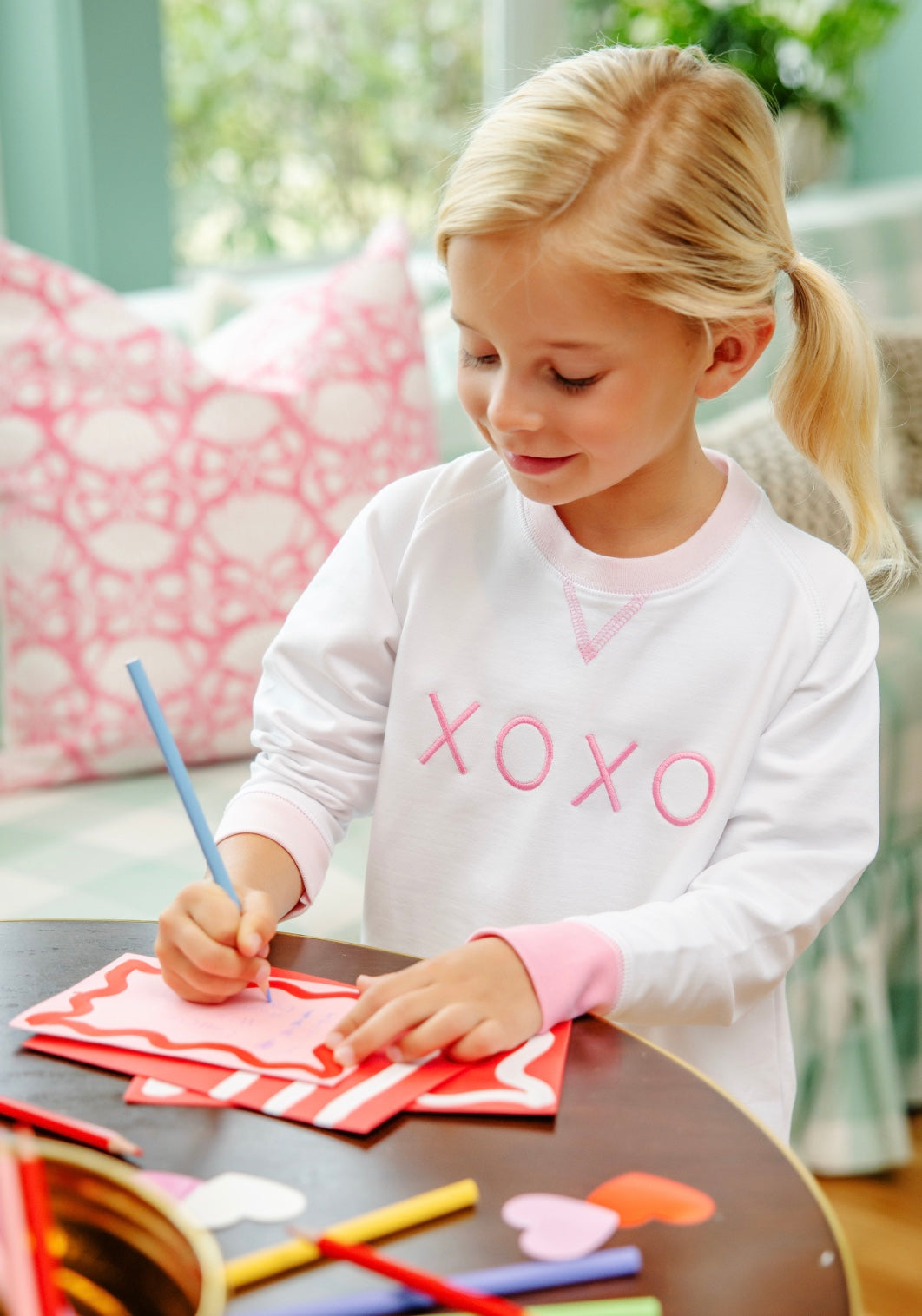 The Cassidy Comfy Crewneck is a must-have for your little ones wardrobe! Featuring an adorable Palm Beach Pink XOXO applique, this Cassidy is perfect for Valentine's Day celebrations and beyond!